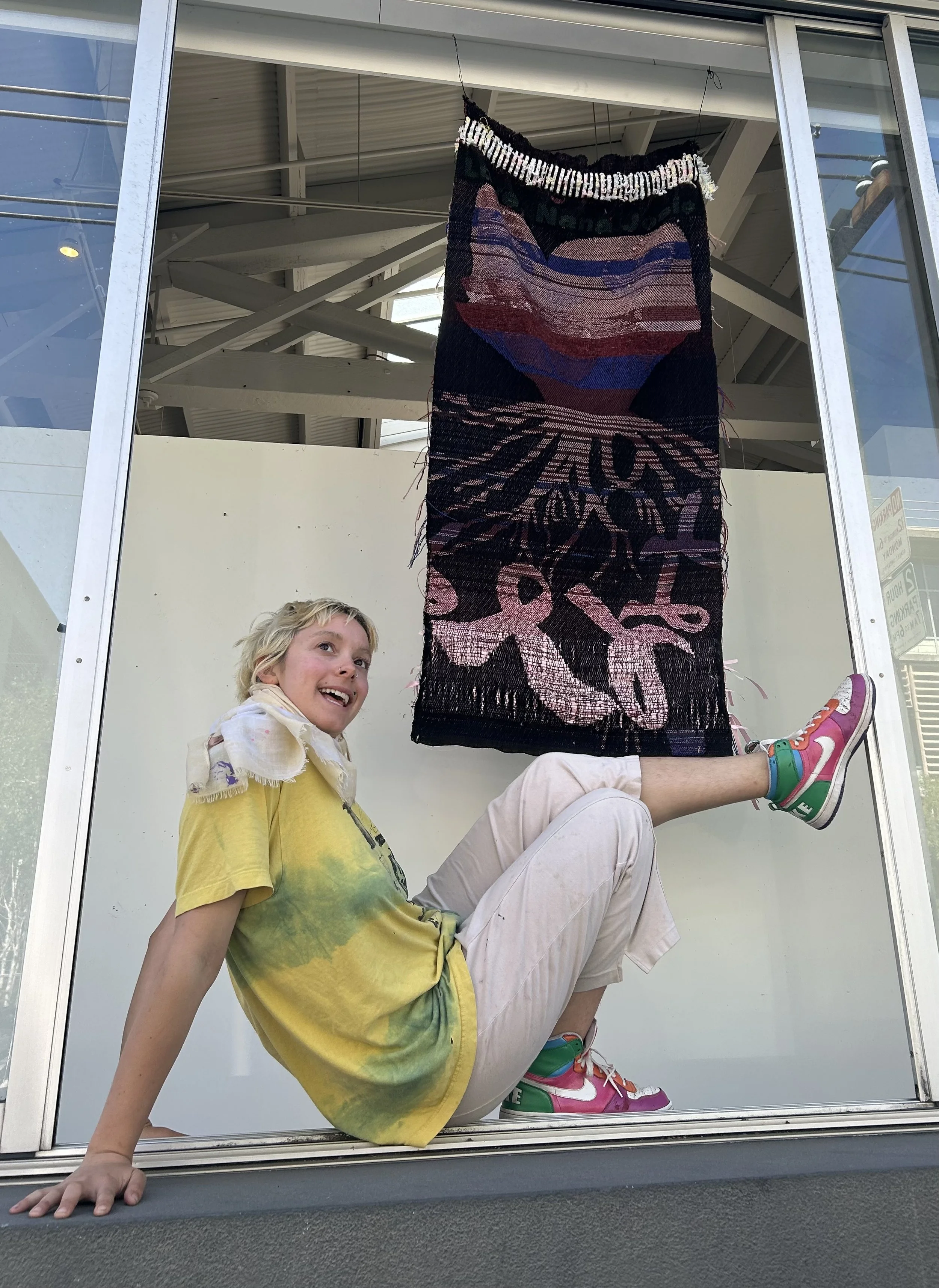 Currently, as a Textiles major and writing minor at California College of the Arts, they focus on the ecology of clothing, analog and digital weaving, natural dyeing, mechanical knitting, plus the historical allegory of cloth and clothes. They are ecstatic to share their passion for weaving with the students at Chris Babcock Art Prep.